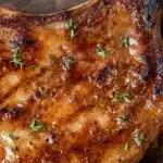 3. Season the Chops: In a small bowl, mix olive oil, garlic powder, onion powder, smoked paprika, salt, black pepper, and thyme. Rub this mixture evenly over both sides of the pork chops.