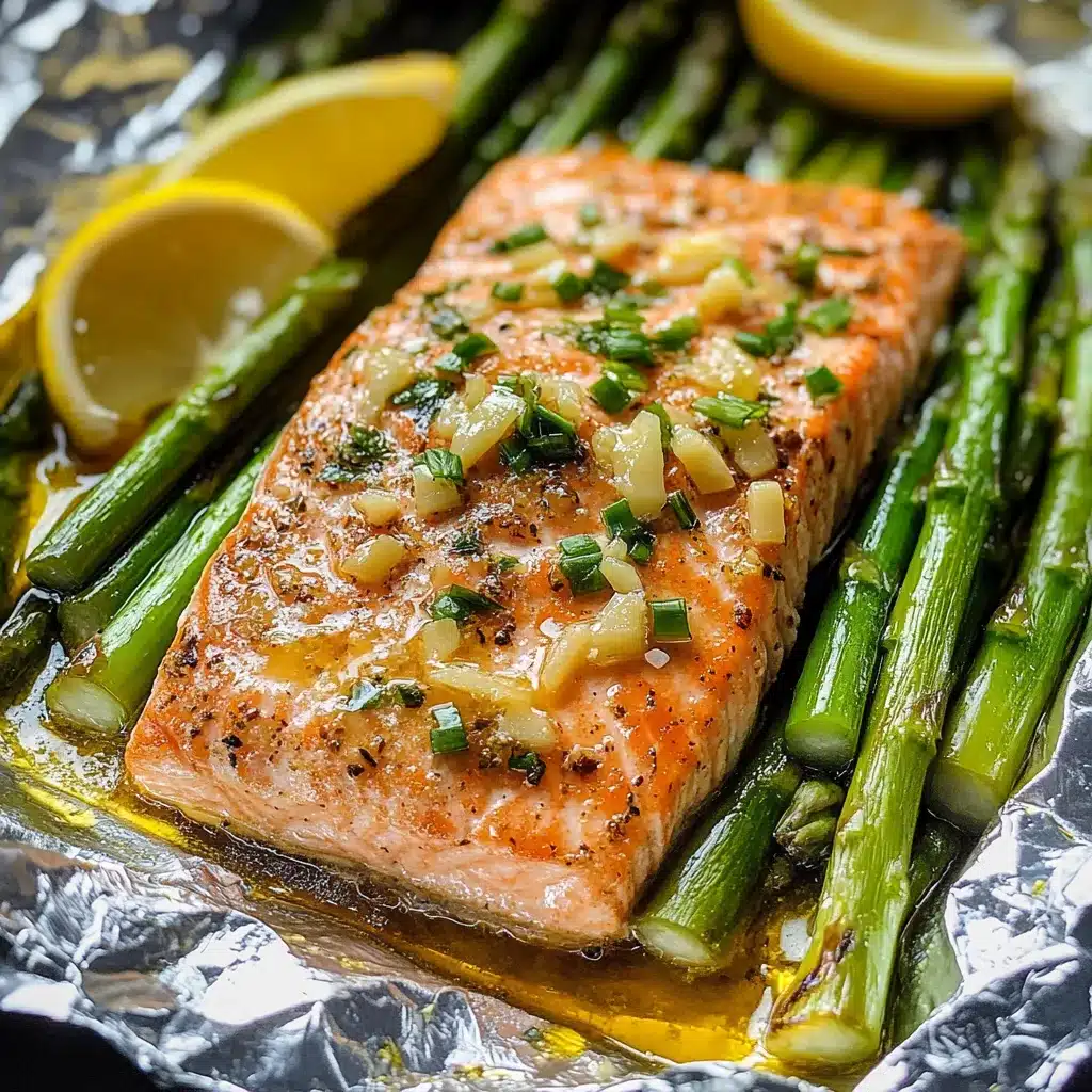 Baked Salmon in Foil with Asparagus and Lemon Garlic Butter Sauce: An Incredible 7-Step Recipe