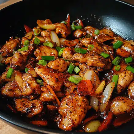 Black Pepper Chicken is a flavorful, savory dish that combines the heat of freshly ground black pepper with the richness of a savory sauce. Whether you enjoy it with rice, noodles, or stir-fried vegetables, this dish offers the perfect balance of spice, savory depth, and satisfying protein. Easy to prepare and customizable to your tastes, this recipe will quickly become a favorite in your cooking repertoire. Whether you’re making it for a family dinner, meal prepping for the week, or impressing guests with something new, Black Pepper Chicken is sure to be a hit. Enjoy the perfect blend of heat, savory goodness, and aromatic flavors with every bite!
