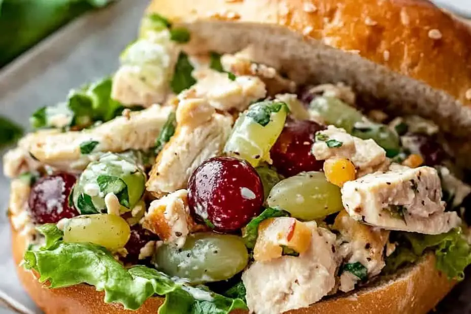 Chicken Salad With Grapes on a Bagel is a perfect blend of flavors and textures, making it an ideal lunch option for any occasion. Its refreshing ingredients and ease of preparation make it both satisfying and versatile. Whether you’re enjoying it alone or sharing it with friends and family, this dish will surely impress. Don’t hesitate to get creative and make this recipe your own!