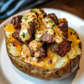 Loaded Baked Potatoes with Steak Bites is a hearty, flavorful meal that combines the comforting appeal of a baked potato with the richness of steak. It’s perfect for dinner, special occasions, or when you want something filling and indulgent. With its customizable toppings, juicy steak bites, and satisfying baked potato base, it’s a dish that’s sure to become a favorite at your dinner table. Try it today, and enjoy the perfect balance of creamy, savory, and crispy in every bite!