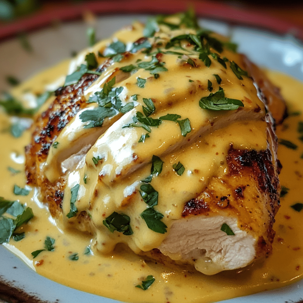 - Top the Chicken: Return the cooked chicken to the skillet, spooning the cheese sauce generously over each piece.