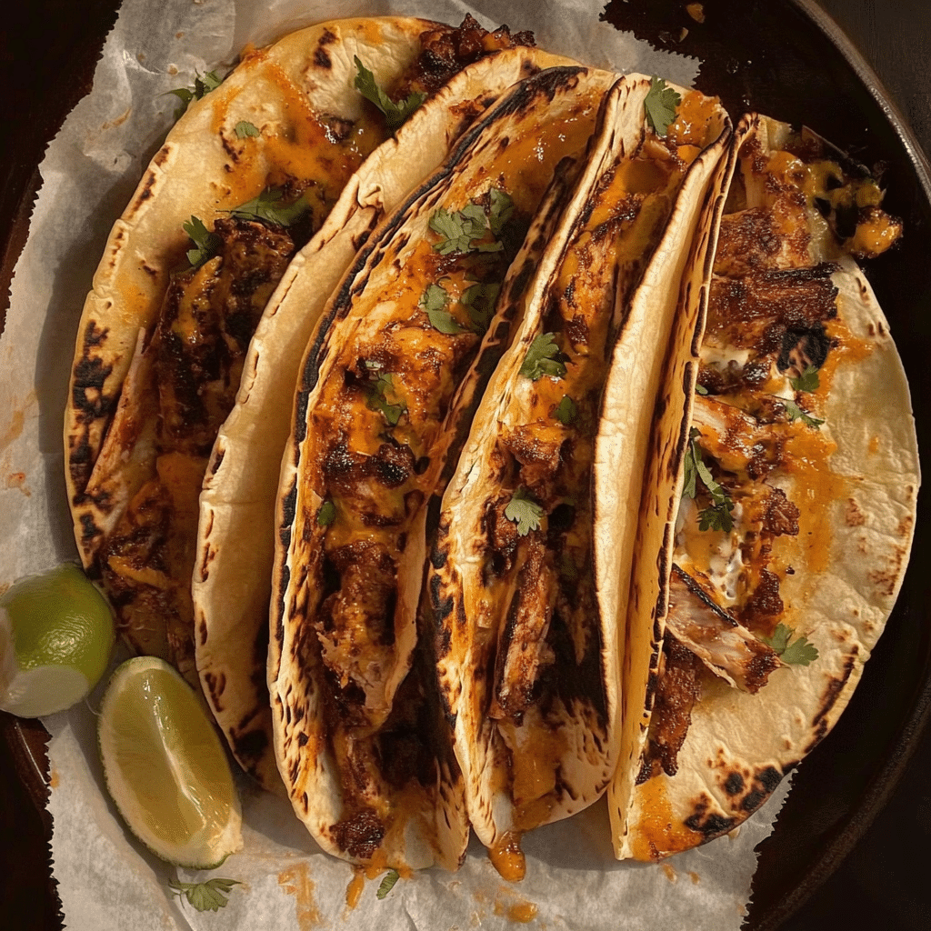 - Grilled to Perfection: Once assembled, the tacos are lightly grilled, creating a crisp exterior that contrasts beautifully with the soft, cheesy filling.