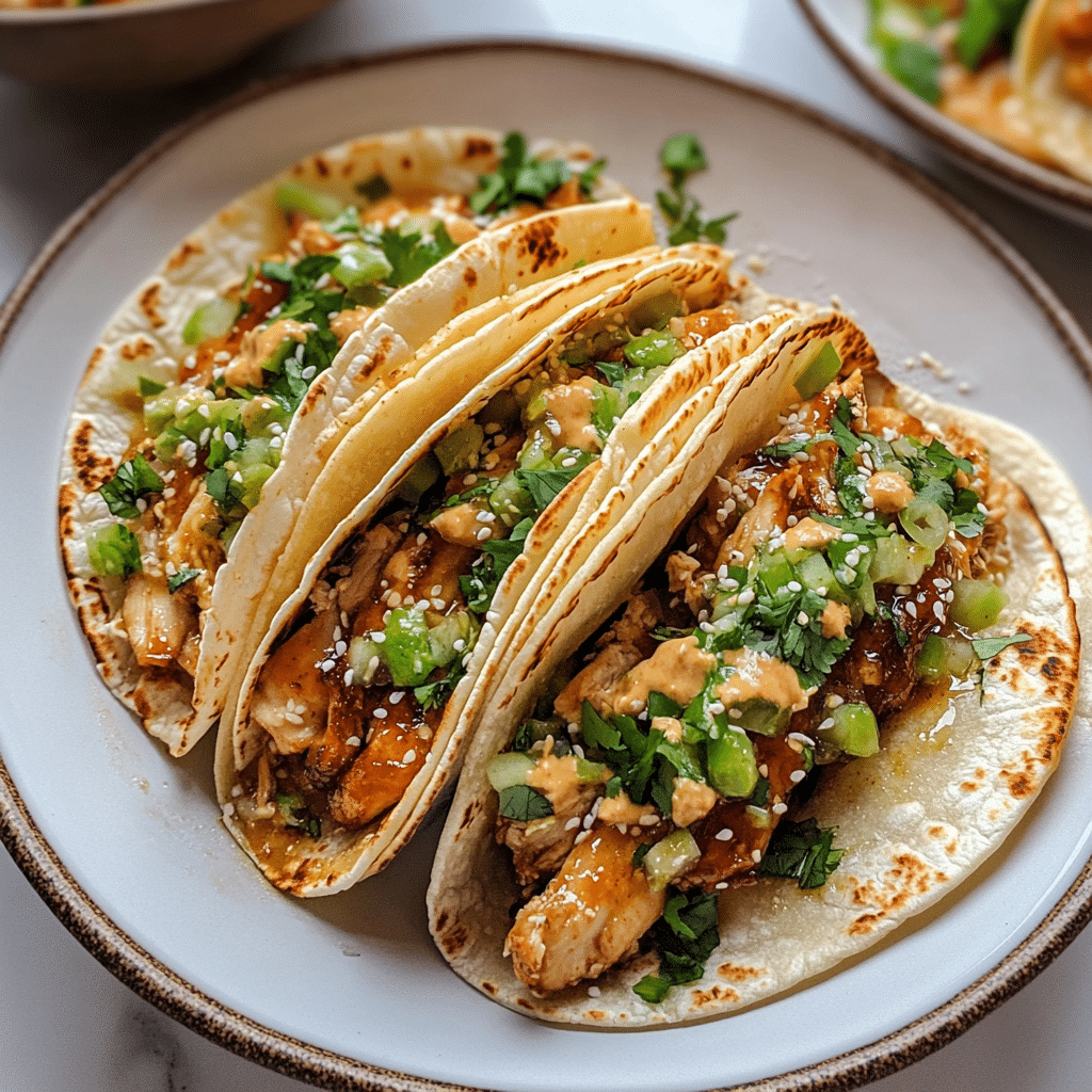Teriyaki Chicken Tacos are a unique and flavorful fusion dish that combines tender, juicy chicken coated in a sweet and savory teriyaki glaze with fresh toppings, all wrapped in warm tortillas. Each bite delivers a delightful blend of Asian-inspired flavors with the fun and portability of tacos.